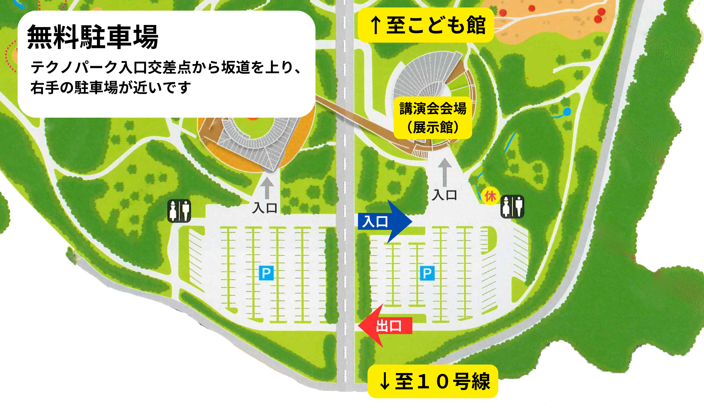 - 駐車場内は一方通行です。逆走されないよう、場内の表記をご確認下さい。