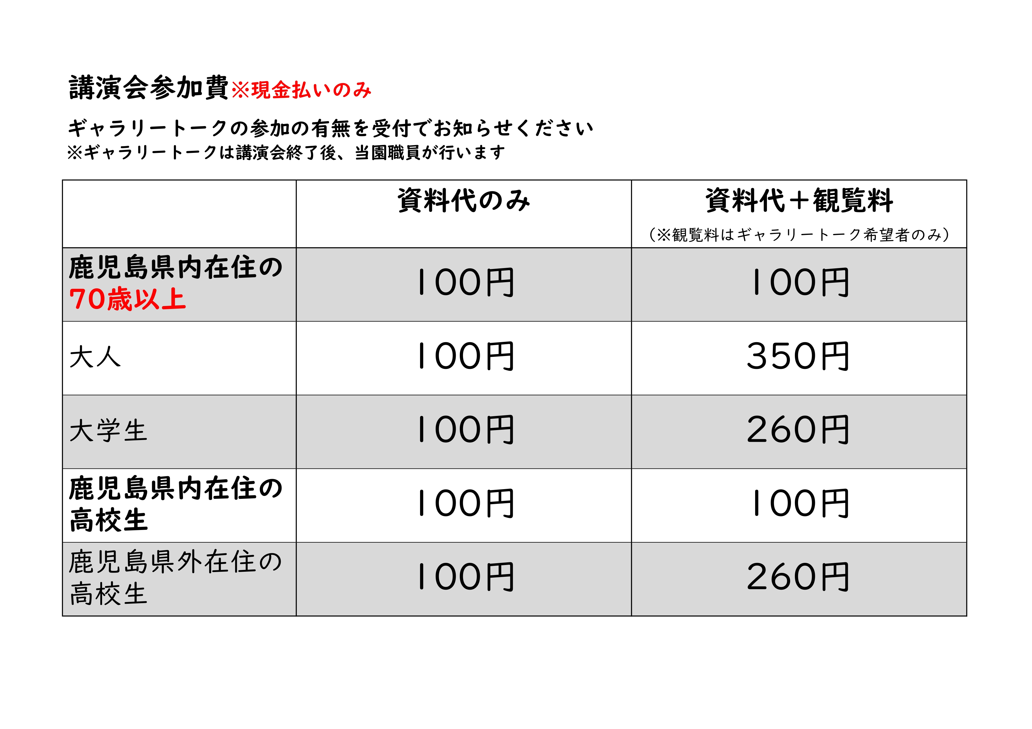 - 資料代(全員)、展示館入館料(ギャラリートーク希望者のみ)は現金のみの取り扱いとなります。